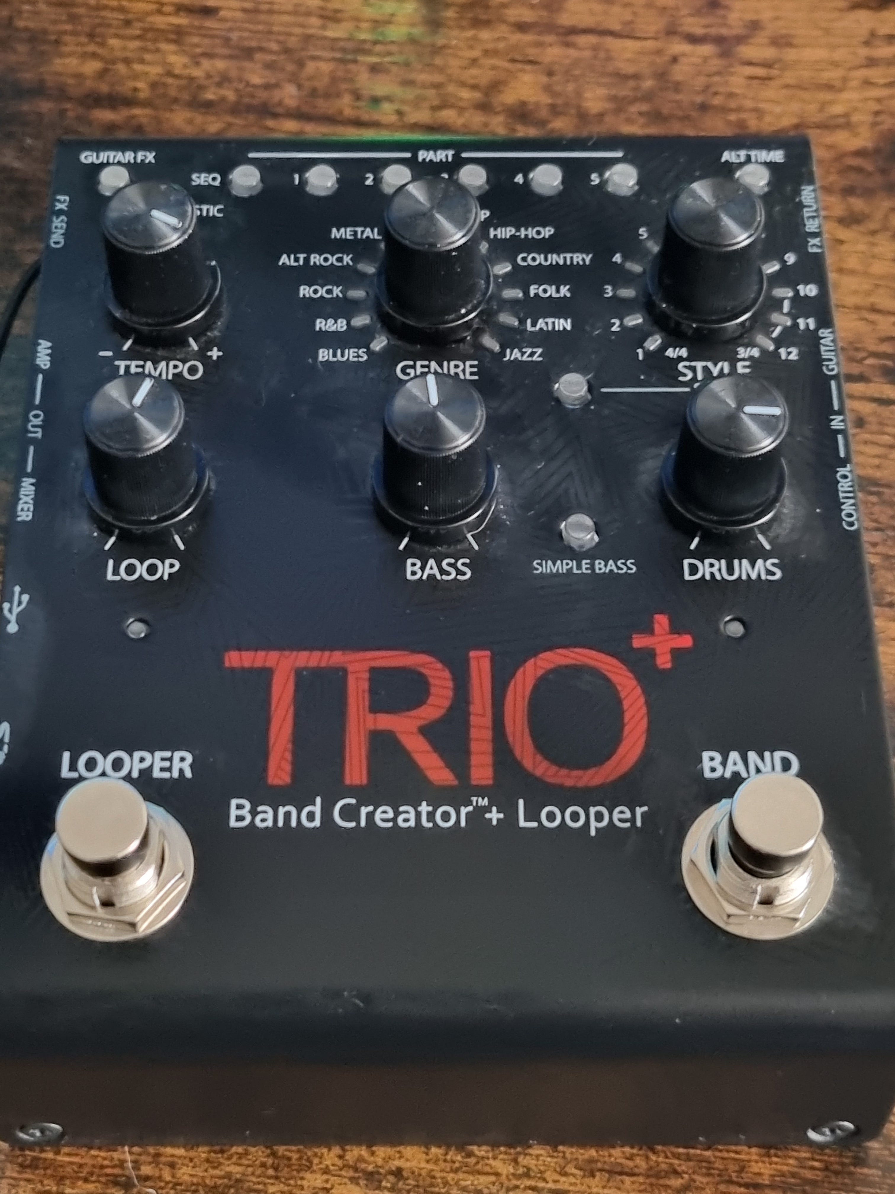 Now it gets a bit sketchy, for the demo to pass to the collaborators, I take this idea to GarageBand and underpin the idea with a built in drummer or I use a Trio + pedal which creates drum parts and bass parts from what I play into it and record that.